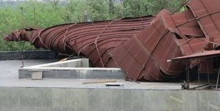 Сейчас решается проблема, как демонтировать нависшие над зданием многотонные железные конструкции.