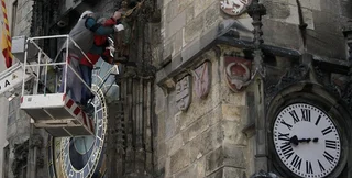 Иностранец, национальность которого выясняется, забрался на куранты и повредил часть кладки в нижней части лунного круга. При этом камера наблюдения зафиксировала его действия.