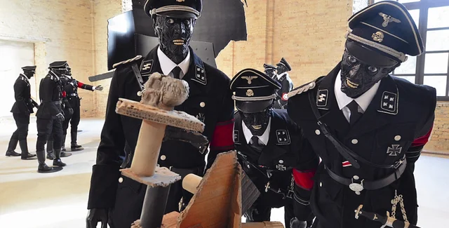 Куратор первой отечественной биеннале современного искусства британец Дэвид Эллиотт собрал сотню художников со всего мира, включая таких звезд, как китаец Ай Вейвей, россияне Илья Кабаков и группа "Аес+Ф", британцы братья Чэпмены, француженка Луиз Буржуа, и попросил их поразмышлять на тему возрождения и апокалипсиса в современном искусстве. Получилась очень насыщенная и при этом целостная экспозиция, которая занимает весь первый этаж "Мистецького арсенала" и половину второго. На просмотр выставки можно потратить не один час, особенно учитывая, что значительная ее часть отведена под видеоработы.