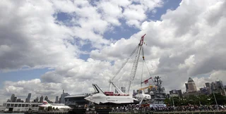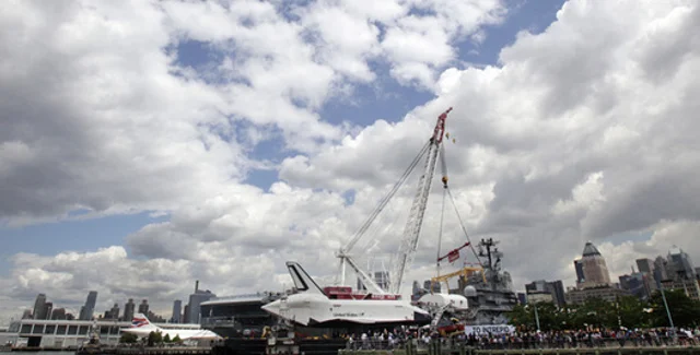 Американский шаттл Enterprise сегодня был доставлен на музей-авианосец Intrepid в Нью-Йорке.