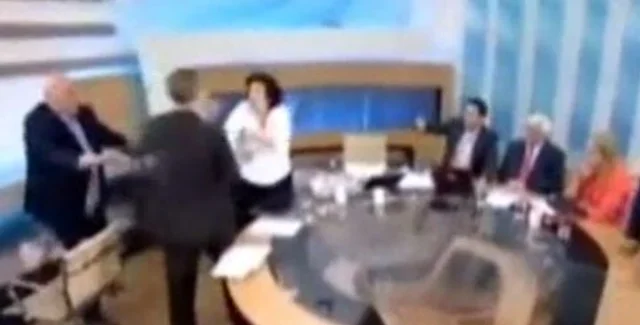 Ведущий телешоу Гиоргос Пападакис безуспешно пытался остановить насилие.