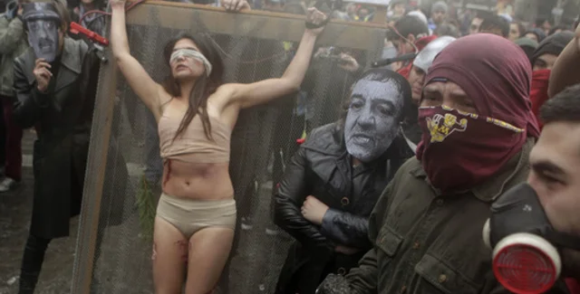 Противники диктатора, возмущенные показом фильма, устроили в центре чилийской столицы ответную акцию.