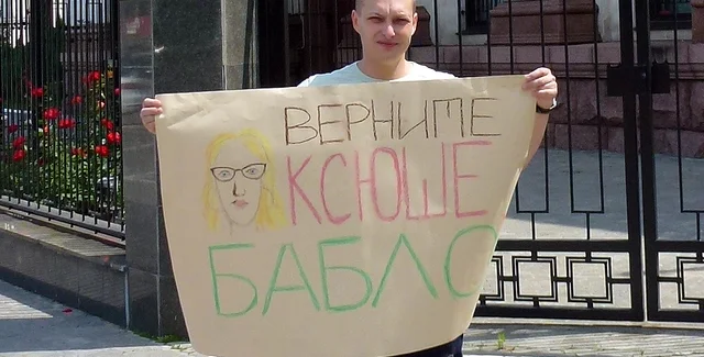 Форма протеста – двойной мономитинг, обусловлена запретом на проведение несанкционированных собраний, действующим как в России, так и в Украине, пояснили Фокус.ua участники акции. Свои требования они выразили на двух плакатах, которые развернули у посольства: "Верните нам страну" и "Верните Ксюше бабло".