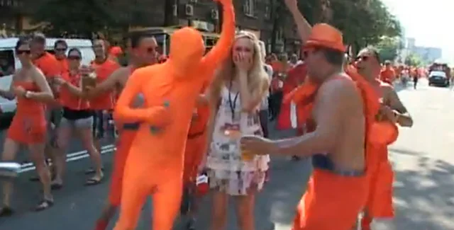 Футбольные фанаты из Нидерландов, приехавшие в Харьков, чтобы поддержать свою сборную на Евро-2012, чуть не довели до истерики журналистку одного из местных телеканалов