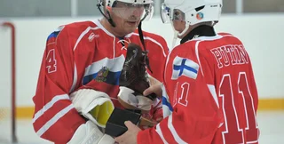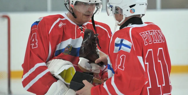 Президенты России и Финляндии Владимир Путин и Саули Ниинисте после окончания переговоров вышли на лед в российском курортном местечке Игора и сыграли в хоккей. Матч был между командами из РФ и Финляндии. Оба лидера играли за команду России.