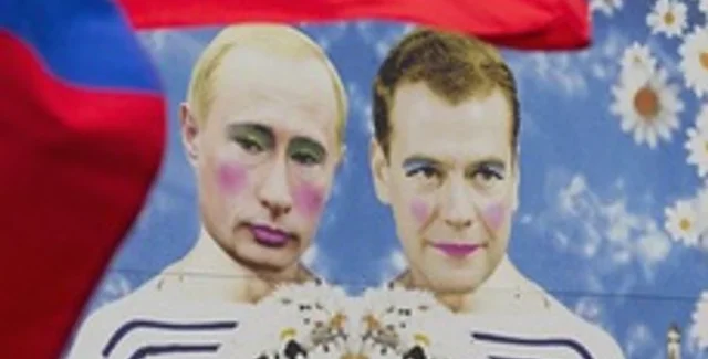 Когда колонна из сорока ярко и красочно оформленных автоплатформ с костюмированными участниками и музыкальными группами пересекала бульвар Унтер Ден Линден, ее встречал плакат на четырех языках "Вы въезжаете в российский сектор. No free speech! No homo propaganda!" - Никакой свободы слова. Никакой гомопропаганды".