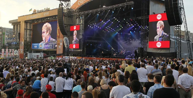 В Киеве прошел благотворительный концерт Элтона Джона и группы Queen, который посетили более 100 тысяч человек.