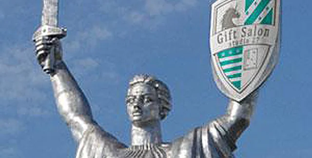 Щит с гербом СССР на самом большом памятнике страны в день проведения финала чемпионата Евро-2012 закрыли рекламой