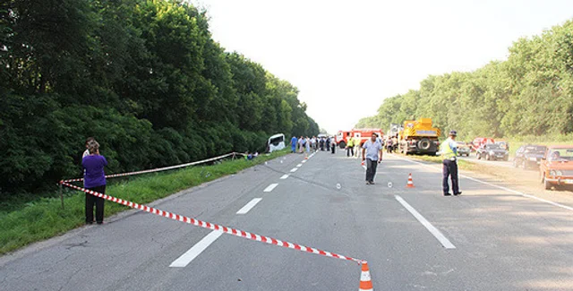 В МЧС Украины не исключают, что водитель автобуса скорее всего уснул за рулем. В автобусе находились 43 человека, погибли 14 паломников. В Черниговскую областную клиническую больницу госпитализировали четырех пострадавших, 25 человек попали в Черниговскую городскую больницу №2.