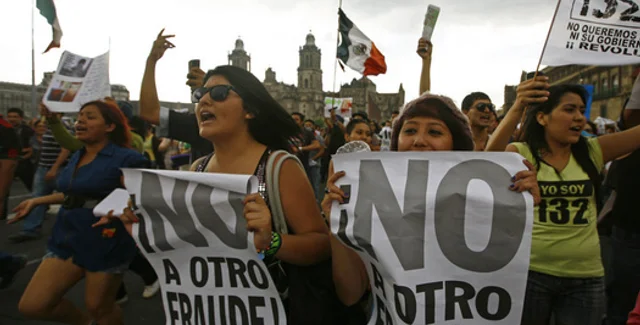 Протестующие обвиняют партию Ньето в подкупе избирателей.