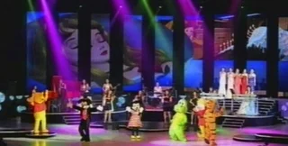 На них видно, как Микки-Маус, Винни-Пух и другие мультипликационные герои танцуют на сцене вместе со скрипачками в коротких юбках.