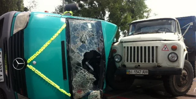 По данным МВД, ДТП произошло 13 июля около 13:00 на углу улиц Шведская могила и Зиньковская. В микроавтобусе ехали 17 пассажиров на свадьбу в Диканьський район. Как удалось установить, 48-летний водитель микроавтобуса не предоставил преимущество в движении грузовику под управлением 46-летнего полтавчанина, "что привело к опрокидыванию автобуса на проезжую часть с дальнейшим его столкновением с грузовиком".