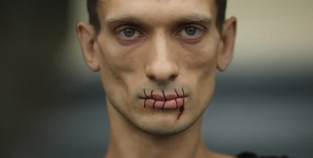 Петербургский художник Петр Павленский заявляет, что вышел в понедельник с зашитым ртом к Казанскому собору, чтобы выступить против ареста обвиняемых в хулиганстве в храме Христа Спасителя участниц панк-группы Pussy Riot. После акции художник снял швы.
