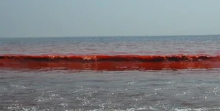 Под Бердянском в районе пляжа санатория с одноименным названием Азовское море приобрело кроваво-красный цвет