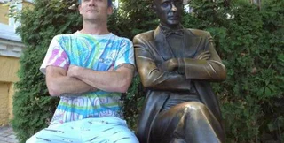 Бас-гитарист коллектива Майкл Flea Бальзари прогулялся по Андреевскому спуску, сфотографировался возле памятника Булгакову и выложил фото в Twitter с подписью "Мой герой Булгаков и я".