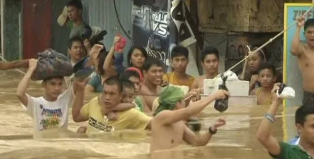 Всего за двое суток на прошлой неделе в столице Филиппин выпало больше месячной нормы осадков, в результате реки в районе Большой Манилы вышли из берегов, и вода на пике наводнения полностью затопила свыше половины территории гигантского мегаполиса с населением в 12 миллионов человек. Спасатели были вынуждены эвакуировать прямо с улиц людей, стоявших по шею в воде.