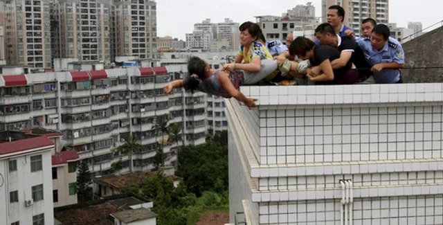 Как сообщает агентство Reuters, в городе Чжаньцзян, провинция Гуандун, женщина в ходе семейной ссоры убила племянника, после чего забралась на крышу с намерением спрыгнуть вниз.
