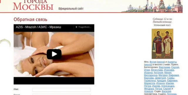 В субботу неизвестные получили доступ к сайту православной епархии Москвы, удалили оттуда контент и разместили клип скандального болгарского исполнителя Азиса.