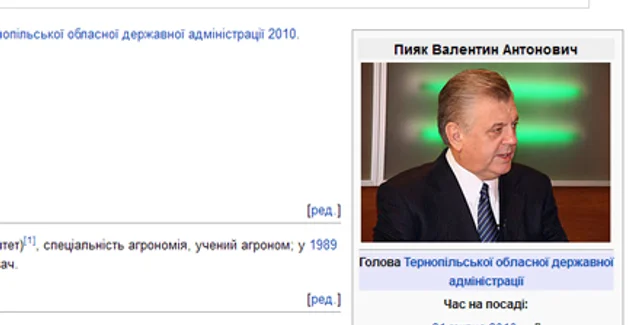 По состоянию на утро понедельника, вместо фамилии Хоптян над биографической справкой и фото председателя облгосадминистрации фигурирует фамилия Пияк. Кроме того, внесены изменения и в пункт "профессия" - сейчас там написано по-украински "пияк-політик", пишет УНИАН.