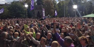 Также на митинге в Чернигове было прямое включение из акции в поддержку ТВі в Киеве.