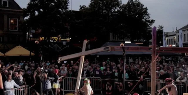 "Таинством священной крестопилии в исполнении признанных мастеров открылся второй день восьмого голландского арт-феста GOGBOT, посвященный группе Pussy Riot. Секстремистки из FEMEN под овации гостей фестиваля показательно спилили три авторских креста, предварительно установленных организаторами", - говорится в сообщении движения FEMEN.