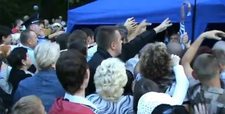 В воскресенье, 9 сентября, во время празднования Дня освобождения Донбасса в Мариуполе люди подрались из-за бесплатных зонтов от Партии регионов, которые раздавали в партийных палатках