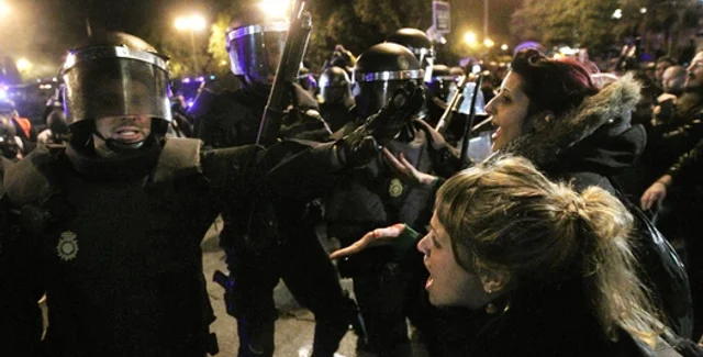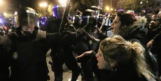 По крайней мере, двенадцать человек получили ранения и двое были задержаны в ночь на воскресенье при разгоне акции протеста против экономической политики правительства в Мадриде, сообщают испанские СМИ.