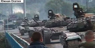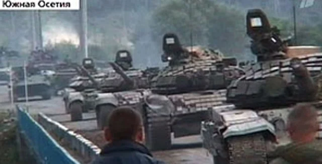 На столицу непризнанной республики Южная Осетия город Цхинвали движется колонна российских танков.