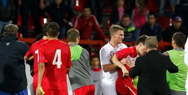 Футболисты и тренерский штаб молодежной сборной Англии устроили потасовку с сербскими оппонентами в ходе отборочного матча на чемпионат Европы 2013 года, по итогам которого юные британцы праздновали победу со счетом 2:0 и гарантировали себе участие в турнире.