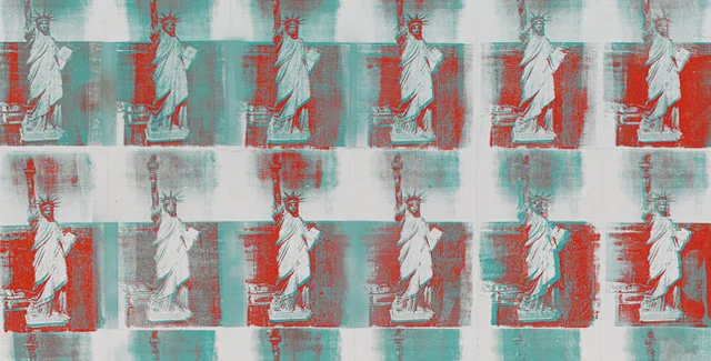 Прототип композиции Уорхола - настоящая "Статуя Свободы" была получена Америкой в дар от французского народа в честь 100-летия Декларации Независимости США в 1876 году.