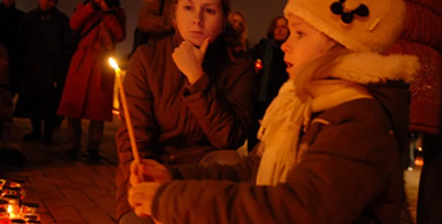 украинцев зажигают свечи возле мемориалов Голодомора и в окнах своих