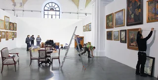 За два дня до официального открытия Большого скульптурного салона залы "Мистецького арсенала" все еще наполовину пусты. Большинство натюрмортов, пейзажей и портретов в массивных золоченых рамах стоят под стенками на полу, а обитые цветастым бархатом кресла и столики на резных ножках разместились вперемешку с современной мебелью из пластика и металла. Галеристы, занимающиеся антиквариатом, никуда не торопятся — вещи, которым пять десятков лет и больше, не любят суетливого обращения. Каждый старинный предмет может рассказать историю лишь в том случае, если к нему долго и внимательно присматриваться. Тут важна каждая мелкая деталь, ведь антикварные предметы — раритетный и штучный товар.