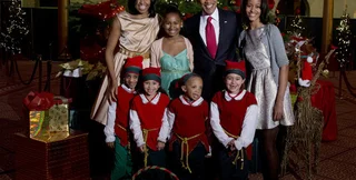 На предрождественском концерте Обама спел с рэпером PsyГлава Белого дома и его семья устроили маленькую фотосессию с детьми, одетыми в костюмы эльфов. Затем президент и многие другие участники концерта, в числе которых оказался автор хита Gangnam Style южнокорейский рэпер Psy, спели рождественские песни.