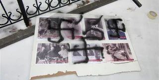 На выставке были представлены фотографии политических деятелей 20-го столетия с хвалебными цитатами, официальные фотографии сталинского периода, а также раздавались листовки с призывом "разобраться в истории и отдать должное такой масштабной исторической личности, как Сталин", сообщает Радио Свобода.