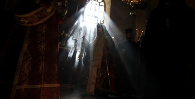 Глава греко-православной церкви провел праздничную службу над гротом, где, как верят христиане, появился на свет Иисус.