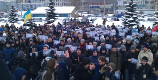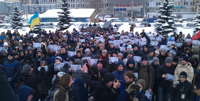 В большинстве своем среди митингующих молодые люди - футбольные фанаты и не только.