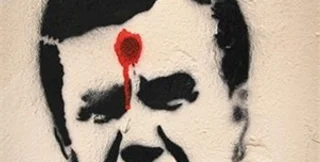 За трафаретное граффити, на котором с красной точкой во лбу изображено лицо, похожее на президента Виктора Януковича, 14 января 2013 года Заречный райсуд Сум приговорил сумчанина Владимира Никоненко к одному году лишения свободы