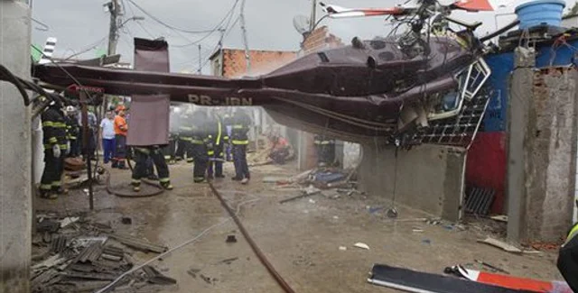 В одном из районов Сан-Паулу в Бразилии вертолет рухнул на жилой дом. Все, кто находился на борту - пилот и трое пассажиров - погибли.