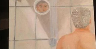 На полотне изображен со спины седой мужчина, который моется в душе, в небольшом зеркале напротив отображается часть его лица. US Weekly полагает, что это автопортрет Буша-младшего, однако с уверенностью утверждать это сложно.