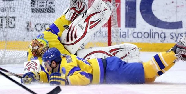 Шайбы: 03:47 Саболич (Тичар, Грегорч - больш) - 0:1; 04:29 Д. Родман (больш) - 0:2; 04:49 Саболич (Йеглич - больш) - 0:3; 09:14 Тичар (Йеглич) - 0:4; 31:46 Урбаш (Претнар, Д. Родман)- 0:5; 47:35 Гниденко (Торяник, Тимченко) - 1:5; 58:22 Йеглич (Саболич - больш) - 1:6