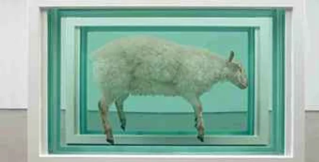 Работа Дэмиена Херста Вдали от стада (в разрезе) была продана на аукционе Сhristie's в среду вечером. Распиленная вдоль туша овцы, помещенная в два контейнера с формальдегидным раствором, ушла с молотка за 3 миллиона долларов