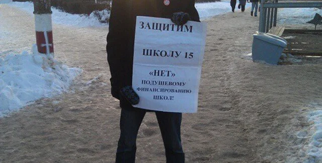 Участники пикетов протестовали против закрытия школы 15 в Дзержинске, которую власти решили закрыть из-за малокомплектности.