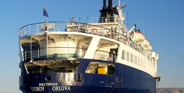 Корабль Любовь Орлова был построен в Югославии в 1976 году как экспедиционное судно ледового класса. Позднее оно было переоборудовано для каботажных пассажирских перевозок на Тихом океане в составе Дальневосточного морского пароходства.