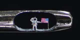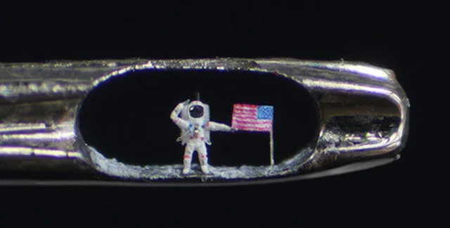 Скульптор Виллард Виган создал в ушке иголки мини-скульптуру Базза Олдрина, одного из первых американских космонавтов, ступивших на Луну.