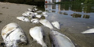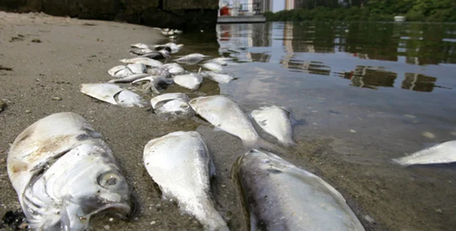 Власти бразильского города Рио-де-Жанейро выловили 65 тонн мертвой рыбы из озера Родригу-ди-Фрейтас, являющегося одной из главных достопримечательностей города.