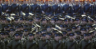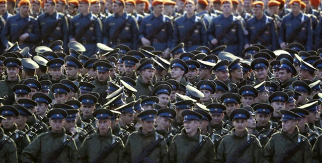 В военном параде принимают участие более 11 тысяч военнослужащих, 101 единица боевой техники и 68 самолетов и вертолетов Военно-воздушных сил России.