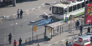 Автобус сильно поврежден, вылетели стекла, частично снесло крышу. Взрывная волна повредила также рядом стоящую маршрутку и автобусную остановку.