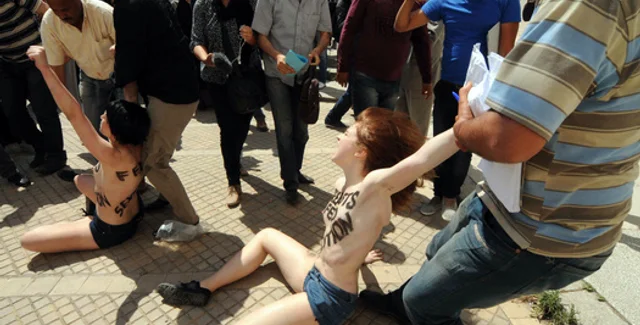 После задержания во время акции 29 под стражей находятся Полин Хиллер, Жозефин Маркман и Маргарит Штерн. Две француженки и немка обнажились, пытаясь добиться освобождения своей единомышленницы Амины Тайлер.