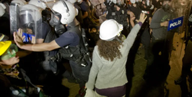 Изгнание с Таксима. Турецкая полиция приняла жесткие меры для разгона демонстрантовВ результате нападения никто не пострадал, в здании были выбиты несколько окон.