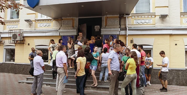 Шесть утра. Центр оформления паспортных документов на окраине киевского пригорода Бортничи. На проходной лежит список очередников — прижатый камешком лист бумаги. В очередь записались уже двадцать человек. Кто-то спит в машинах, припаркованных неподалеку, остальные расположились в тени немногочисленных деревьев. Времени на ожидание много — прием документов начинается с 9.00. "Сегодня я занял очередь в пять утра", — говорит киевлянин Александр Лебедь. Он приехал получать загранпаспорт, а месяц назад, когда только сдавал документы на оформление, очередь, по его словам, пришлось занимать в три часа ночи.